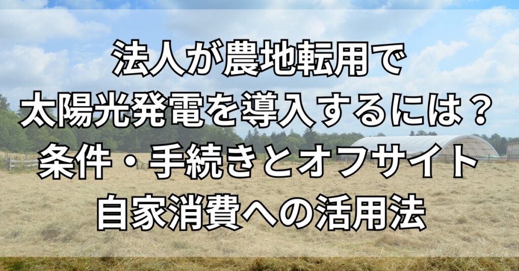 法人が農地転用で太陽光発電を導入するには?条件・手続きとオフサイト自家消費への活用法